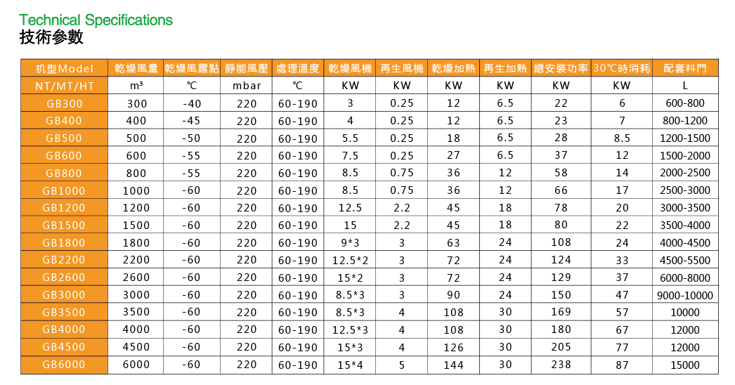 GB300~GB500系列雙分子篩塔除濕干燥機(jī),露點(diǎn)值可達(dá)-60 ℃,風(fēng)量值300~500立方/每小時(shí),物料干燥處理可達(dá)1000公斤/每小時(shí)以上.